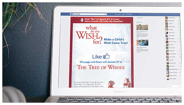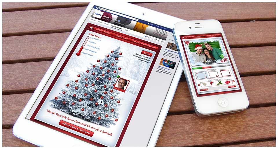 A Facebook App developed to promote Sears’ Holiday Tree of Wishes program. The goal was to increase “Likes” on Facebook and appeal to a younger crowd. Once a visitor “Liked” the page an ornament was added to the Tree of Wishes with their name and a donation of $1.00 was made to the Children’s Wish Foundation. After “Liking” the page users could also create holiday themed e-cards to share with friends and family. The app would also prioritize the ornaments of any of your Facebook friends so that they would show up on your Tree. When the promotion ended the app had nearly doubled Sears’ followers on Facebook with 70,000+ new “Likes” in a 2 month span.